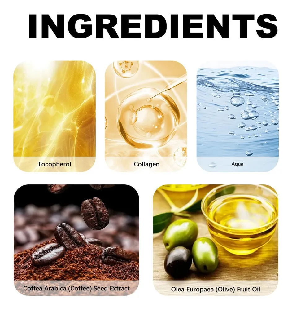 | Cafeína | Revitaliza y combate los signos visibles del envejecimiento. |